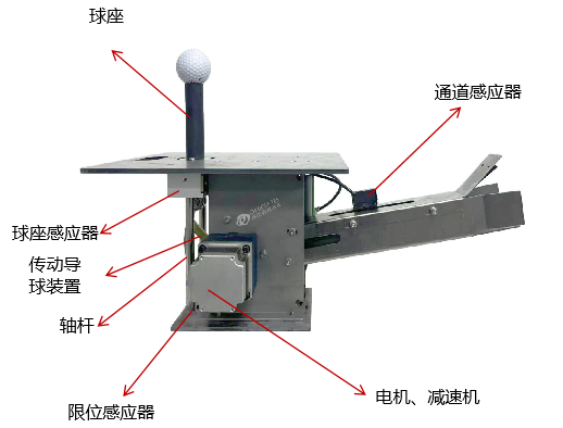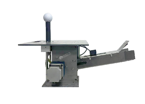 • 运行原理:橡胶球座上的球打出去之后,球座感应器感知到无球,球座下降。当球座下降到下端感应器时,球自动落在球座上端,开始上升,做好下一次打球准备,循环运行,直至该次订单结束。